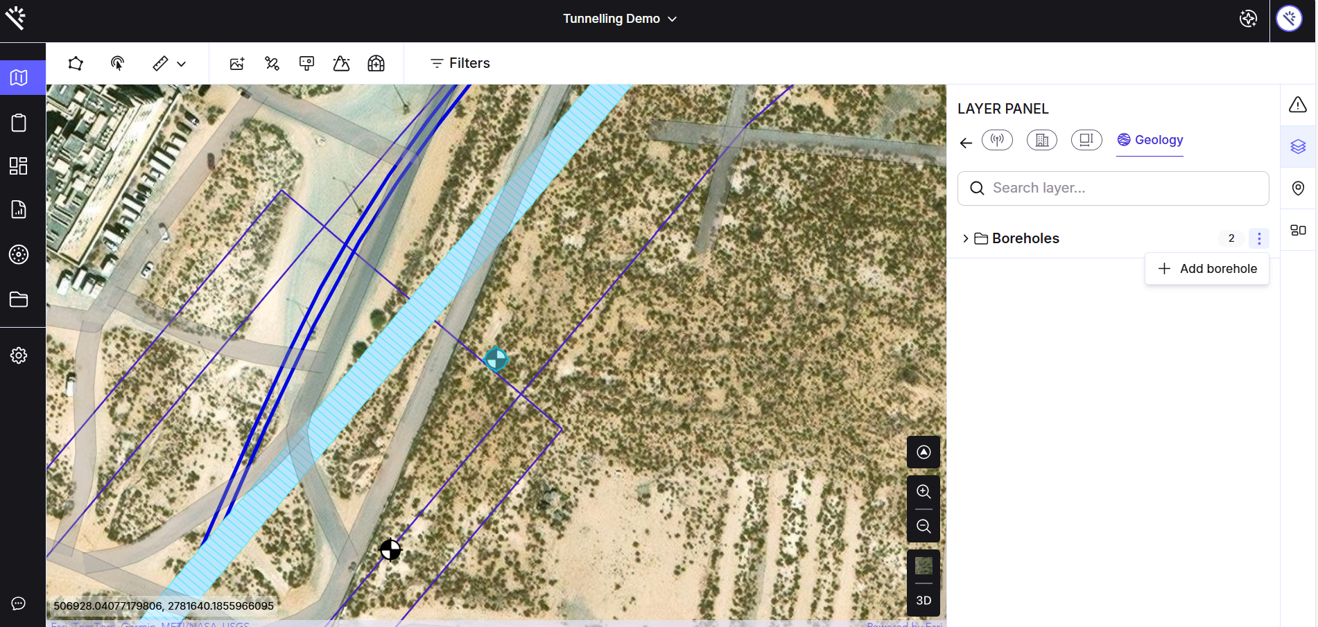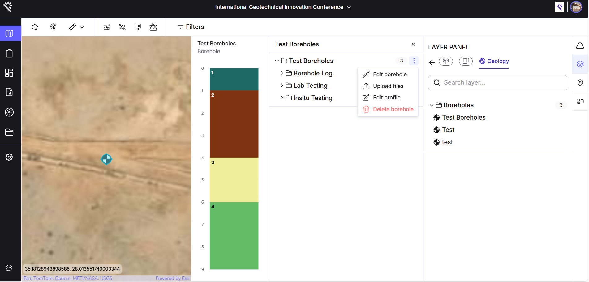 Finally, this feature has an intuitive side panel interface that simplifies day-to-day workflows. It allows users to create, edit, and update borehole data efficiently, reducing manual steps and helping maintain data consistency across their project.