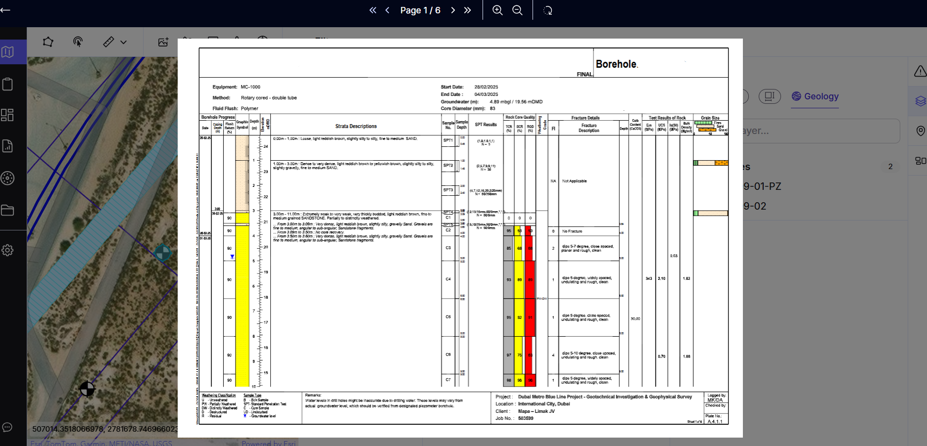 All borehole details—metadata, related documentation, and stratigraphic profiles—are centralized in one place, eliminating the need to manage files and information across multiple tools or folders. This streamlining ensures that every relevant detail is just a few clicks away.