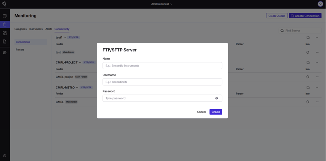In the Monitoring section, click on Create a Connection and select FTP Server.